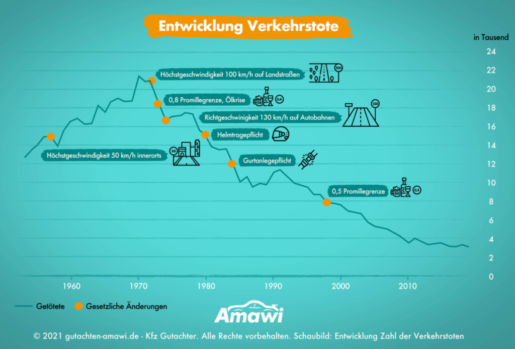 • Insgesamt ist die Zahl der Verkehrstoten und Verletzten seit vielen Jahren rückläufig.