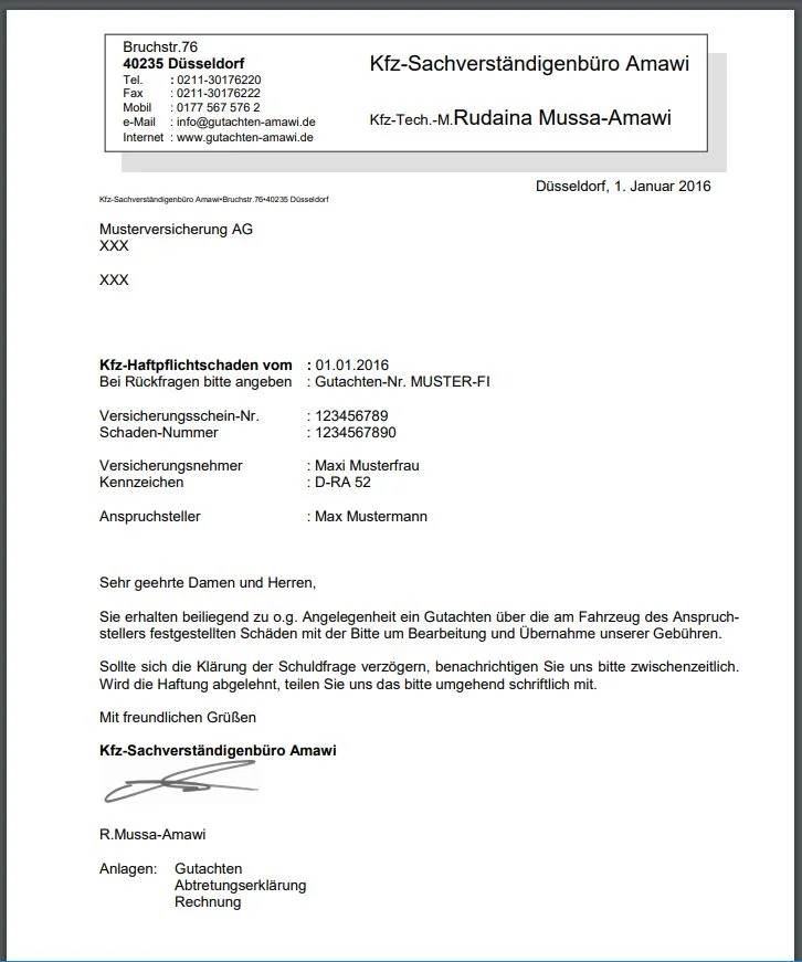 Download kostenloses Kfz-Gutachten Beispiel