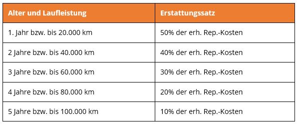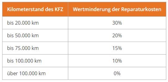 Bei diesem Modell wird die Wertminderung anhand der Prozente der Reparaturkosten in Relation zur Laufleistung des Fahrzeuges ermittelt.