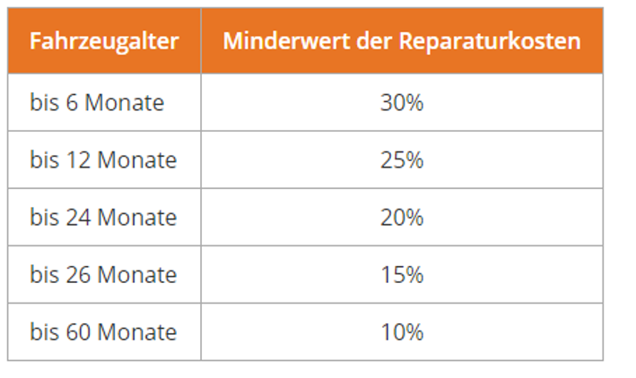 Minderwert = X x (Veräußerungswert + Gesamtreparaturkosten) ÷ 100